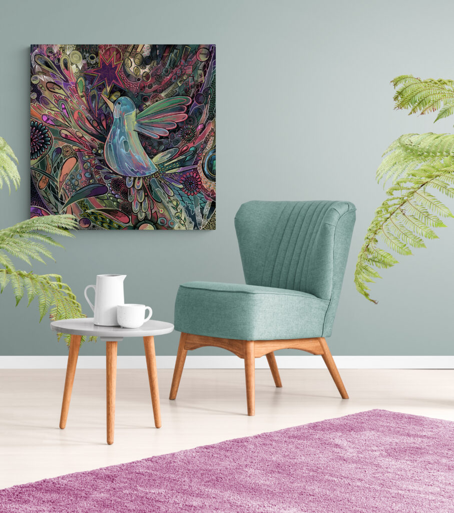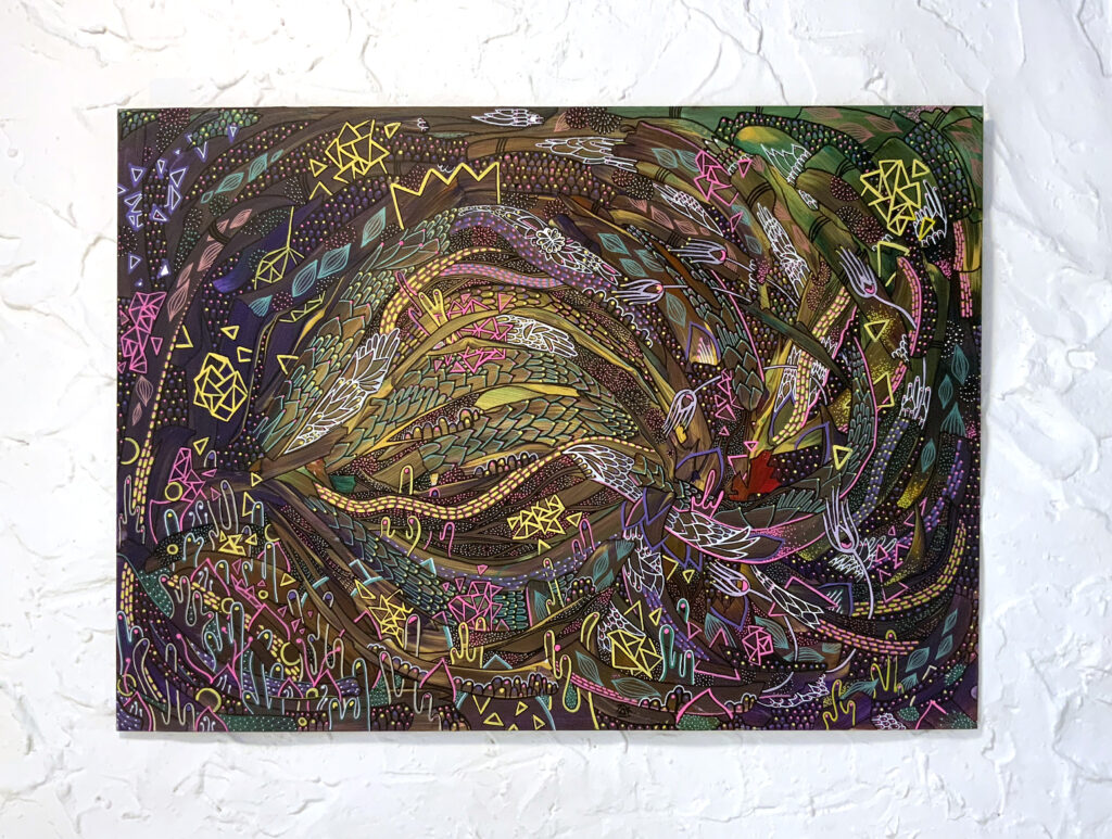 Créative, j’aime explorer différentes techniques graphiques : encre de Chine, peinture acrylique, peinture pigmentaire, collage, peinture digitale, peinture collective, découpe laser… Mes oeuvres sont inspirées par la nature, le mouvement, le détail. Elles sont tantôt assimilées à l’art aborigène, à l’évocation du Brésil ou encore aux estampes japonaise.